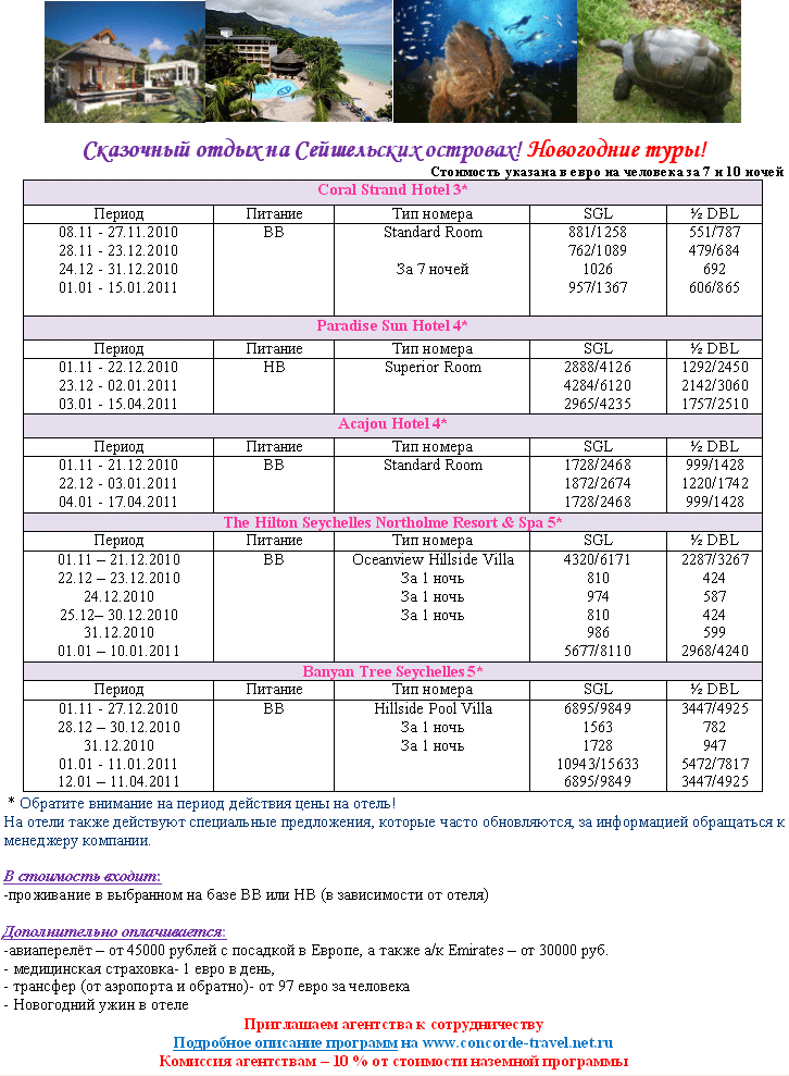 26 Ноя 2010 10:15:02 СЕЙШЕЛЫ от фирмы КОНКОРД ТРЕВЕЛ