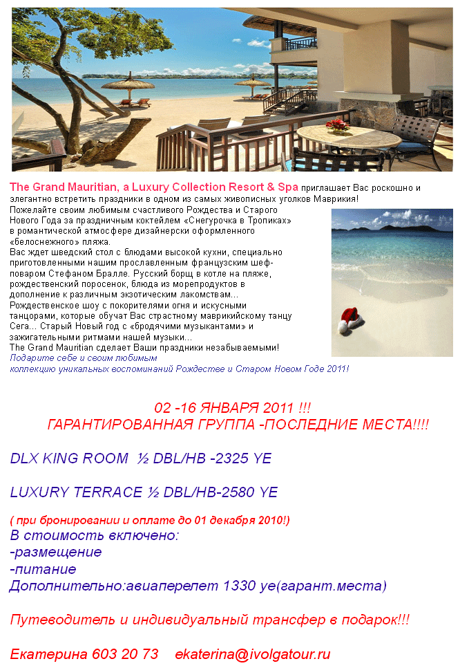 25 Ноя 2010 11:30:29 МАВРИКИЙ-The Grand Mauritian, a Luxury Collection Resort & Spa 02-16 ЯНВАРЯ 2011!!! от фирмы ИВОЛГА