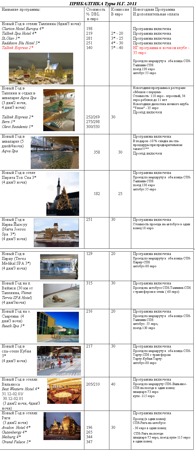 25 Ноя 2010 10:23:50 ПРИБАЛТИКА - Новый Год - СВОДКА ТУРОВ от фирмы ЛАС ФЛОРЕС