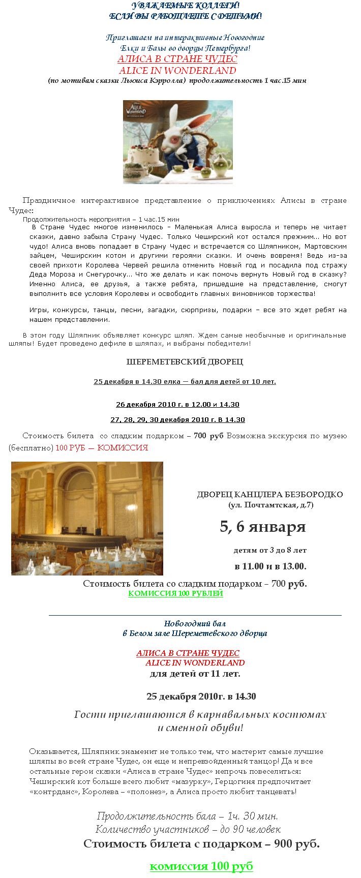 25 Ноя 2010 10:16:11 РОССИЯ - СПб - Новогодние Ёлки и Балы во дворцах Петербурга от фирмы МОЦ-АРТ