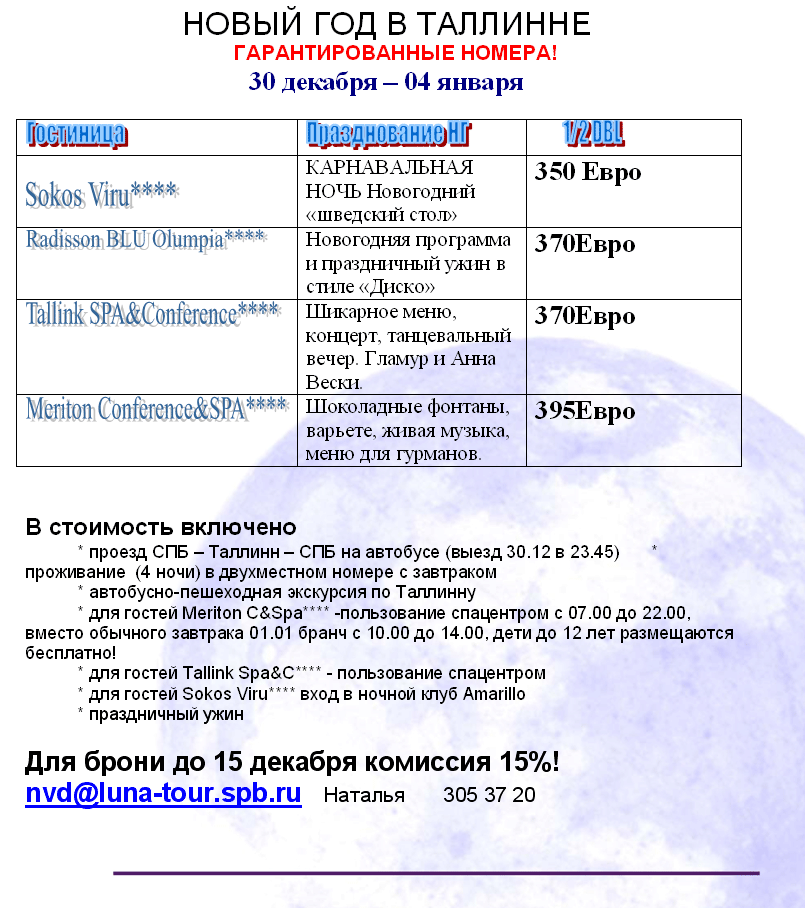 25 Ноя 2010 11:27:24 ЭСТОНИЯ-НОВЫЙ год в Таллинне. Гарантированные номера. 30 декабря - 04 января от фирмы ЛУНА