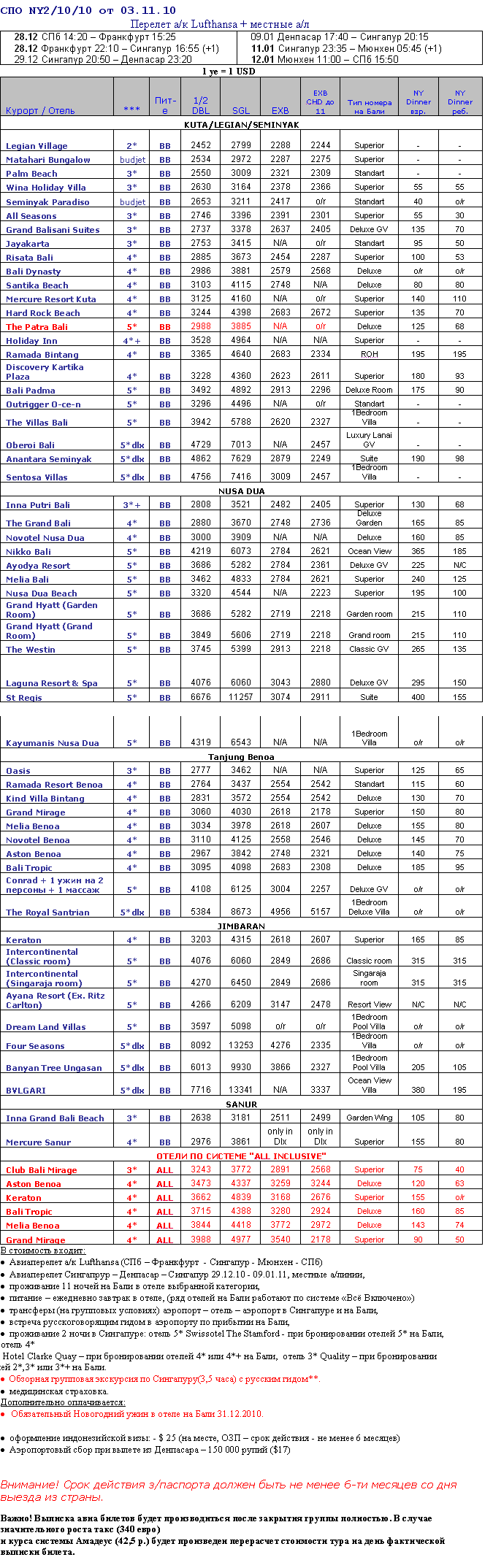 30 Ноя 2010 10:08:22 ИНДОНЕЗИЯ - Новый год о.БАЛИ+Сингапур 28.12-12.01 Гарантированный тур из СПБ от фирмы ПИТЕРТУР