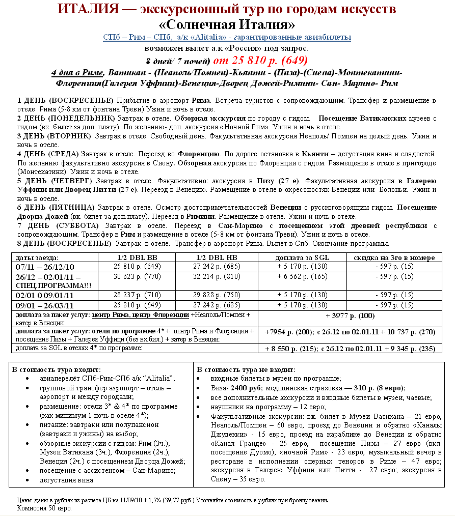 01 Дек 2010 11:53:39 ИТАЛИЯ-<СОЛНЕЧНАЯ Италия> от фирмы АРТ-ТРЕВЕЛ