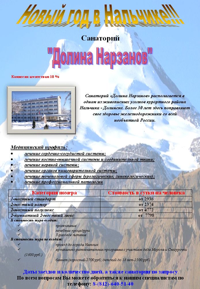 01 Дек 2010 12:12:38 РОССИЯ-НОВЫЙ год в Нальчике!!! Санаторий "Долина Нарзанов" от фирмы DISCOVERY TOUR