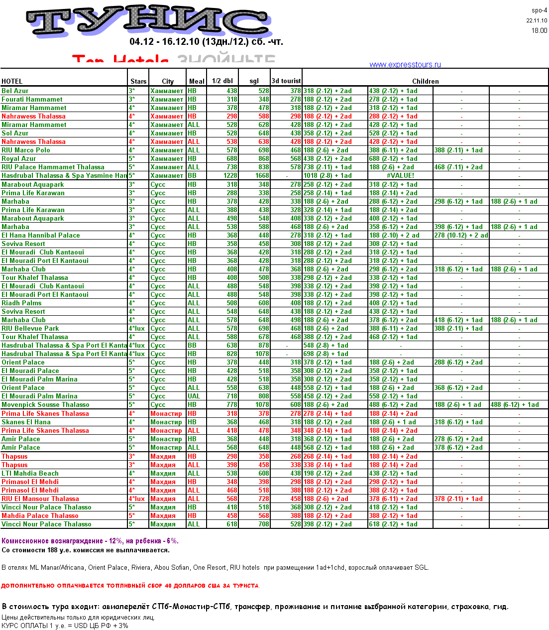 01 Дек 2010 16:14:25 ТУНИС с 04.12 по 16.12 от фирмы ЭКСПРЕСС ТУРС