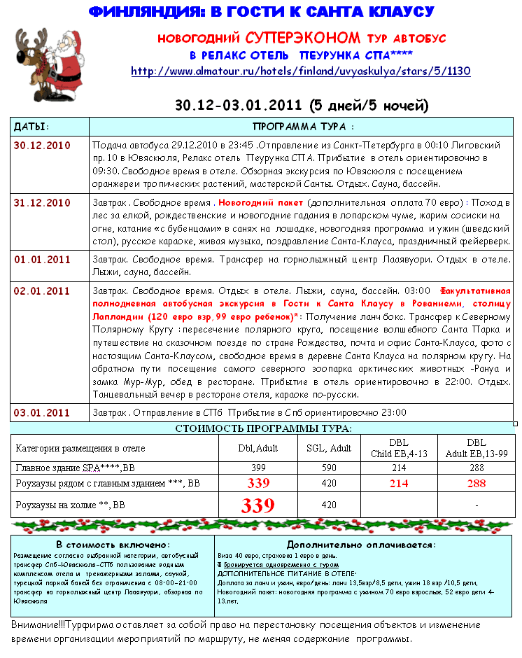 ГОСТИ К САНТА КЛАУСУ с 30.12-03.01.2011 в РЕЛАКС ОТЕЛЬ