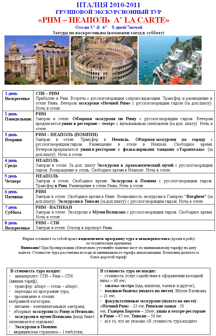 04 Дек 2010 14:00:32 ИТАЛИЯ! Экскурсионный тур "Рим+Неаполь" от фирмы ИНТУРИСТ