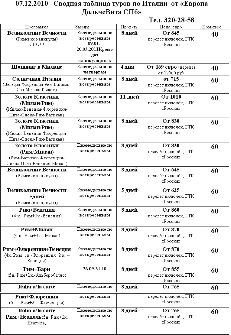очарование Столицы моды в предрождественские дни! Заезды – по вторникам,