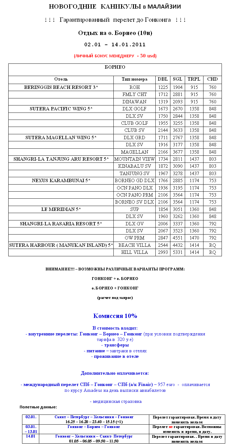 02 Дек 2010 19:16:38 МАЛАЙЗИЯ ~ НОВОГОДНИЕ КАНИКУЛЫ ~ОТДЫХ НА о. БОРНЕО ~ 02/01 - 14/01 ~ ГАРАНТИРОВАННЫЕ БИЛЕТЫ ДО ГОНКОНГА ~ ПОСЛЕДНИЕ МЕСТА ~ от фирмы INTURION.RU