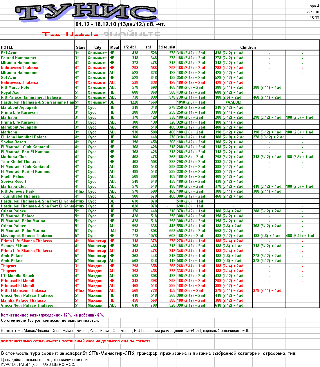 03 Дек 2010 11:29:00 ТУНИС 04.12 - 16.12.10 - от фирмы ЭКСПРЕСС ТУРС