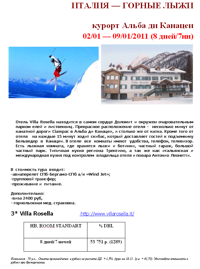 03 Дек 2010 15:42:25 ИТАЛИЯ 02.01-09.01 ГОРНЫЕ ЛЫЖИ курорт Альба ди Канацеи от фирмы АРТ-ТРЕВЕЛ