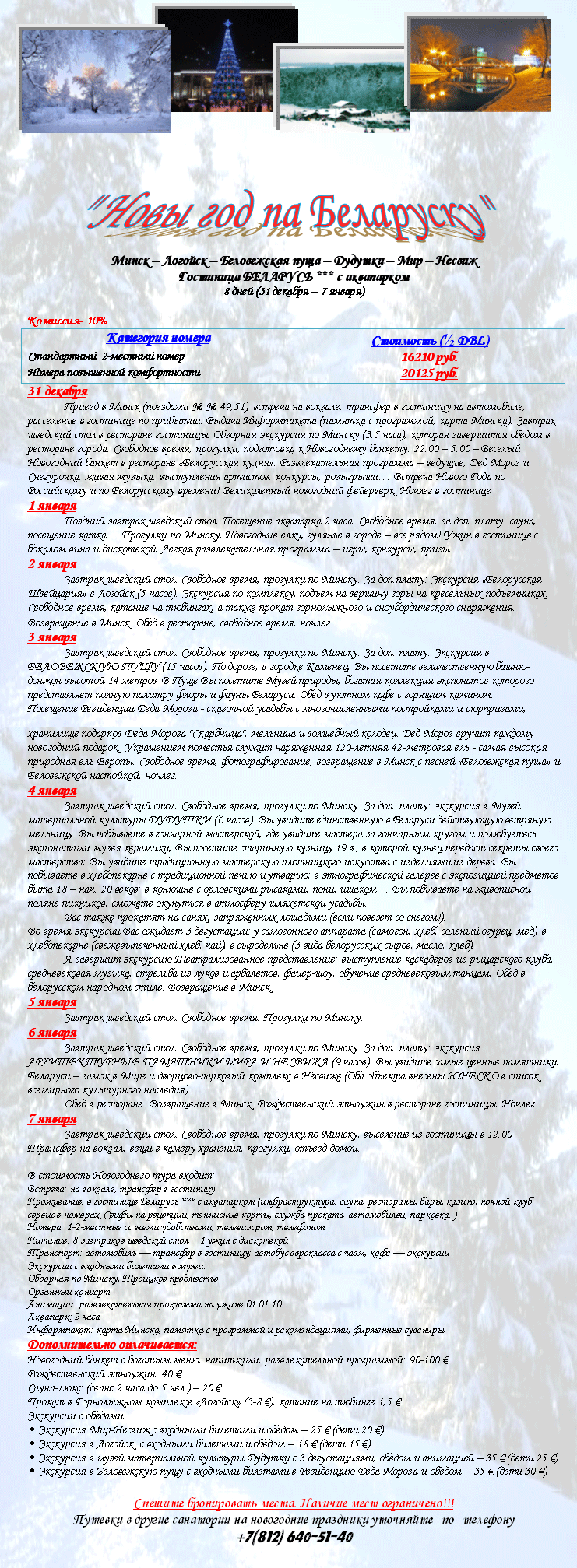 06 Дек 2010 12:46:19 БЕЛОРУССИЯ - МИНСК - Новый Год 31.12-07.01 от фирмы DISCOVERY TOUR