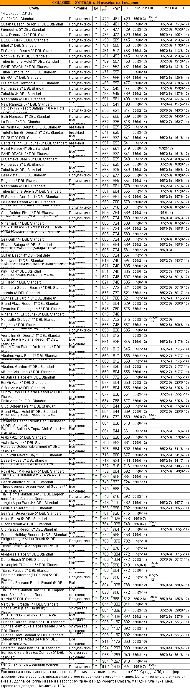 07 Дек 2010 17:00:13 ЕГИПЕТ. Хургада с 14.12 по 21.12 - от фирмы АЛМА ТУР