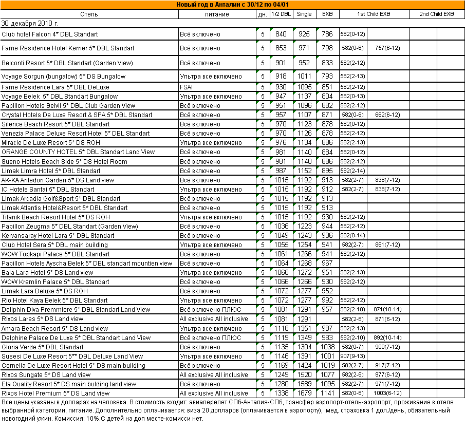 07 Дек 2010 11:52:25 ТУРЦИЯ. Новый год в Анталии с 30/12 по 04/01 - от фирмы АЛМА ТУР