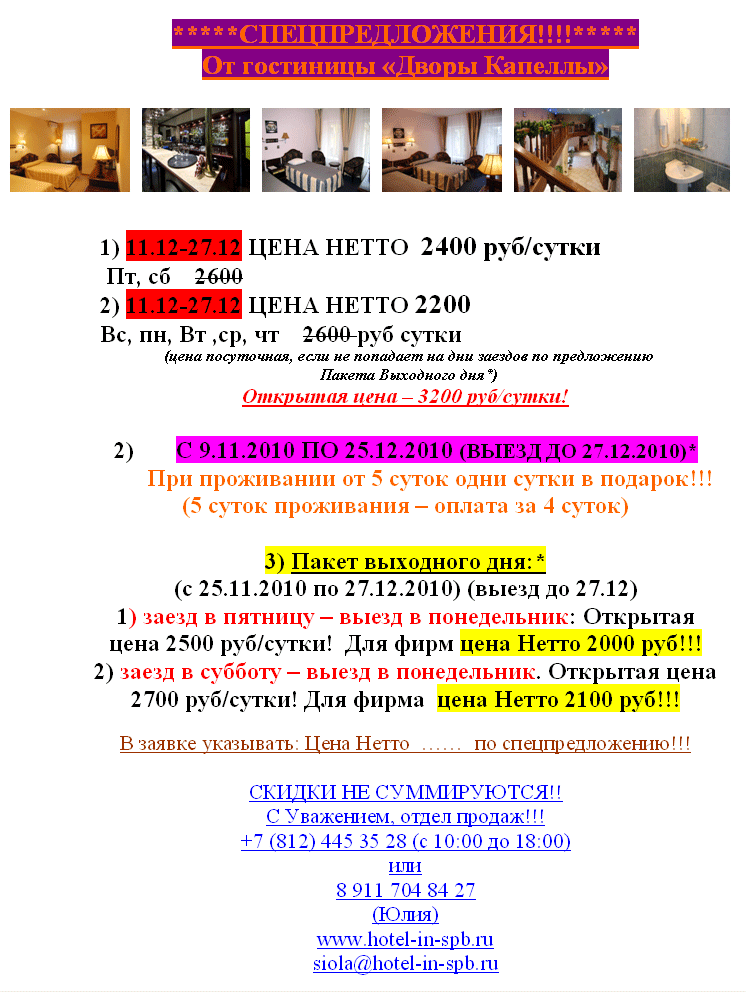 РОССИЯ-СПБ - РАЗМЕЩЕНИЕ - СПЕЦПРЕДЛОЖЕНИЯ!!! От гостиницы <Дворы Капеллы> от фирмы HOTEL IN SPB |