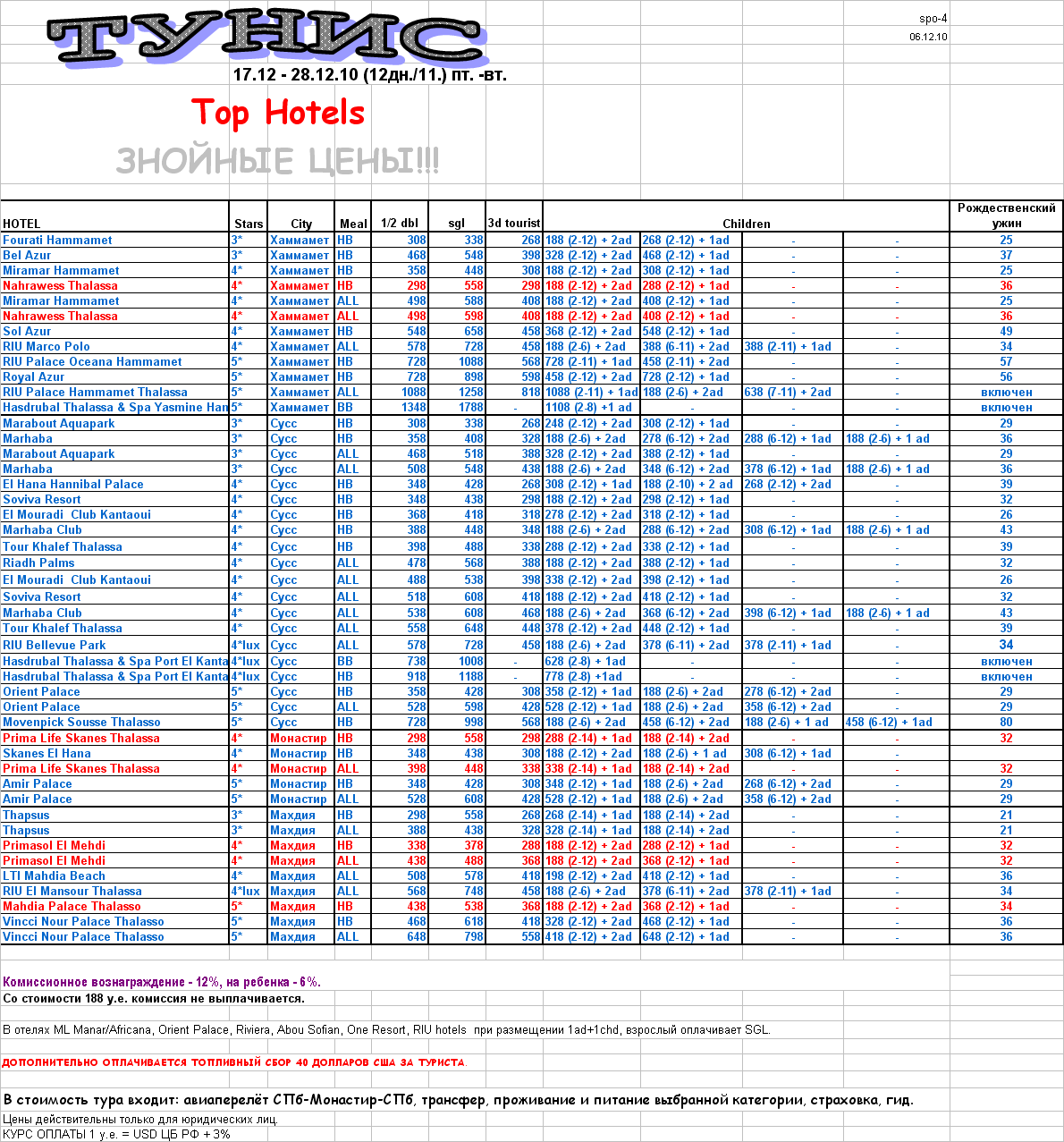08 Дек 2010 17:14:17 ТУНИС-17.12 - 28.12.10 (12дн./11.) от фирмы ЭКСПРЕСС ТУРС