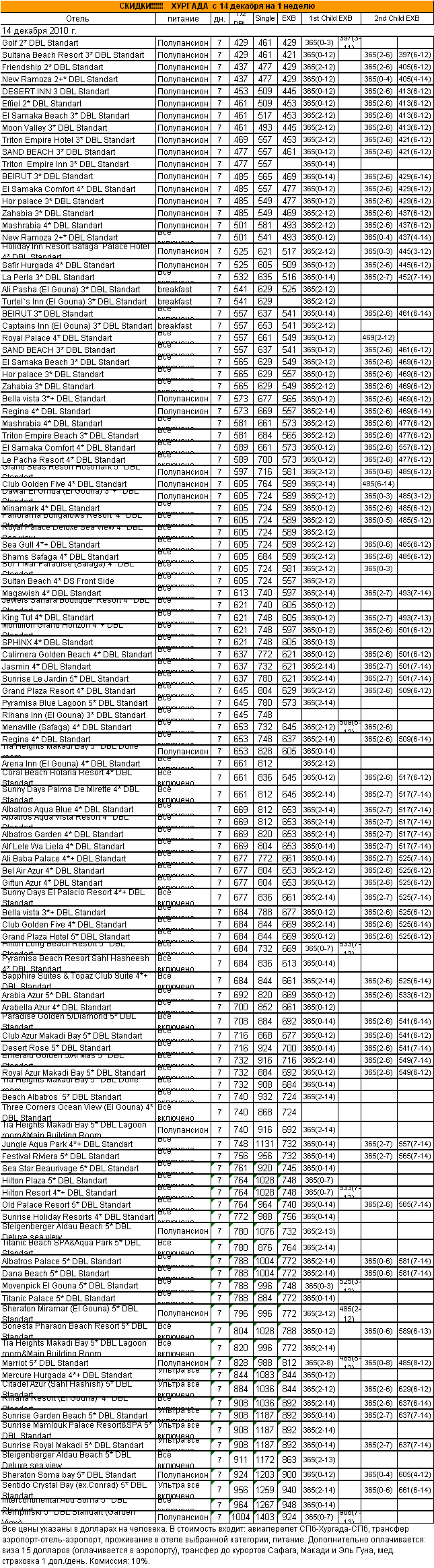 09 Дек 2010 14:09:04 ЕГИПЕТ. Горящая Хургада с 14.12 по 21.12 - от фирмы АЛМА ТУР