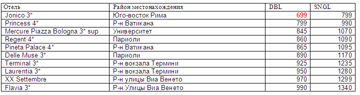 Предлагаем отдельно авиабилеты в Рим с 29.12- 05.01.11