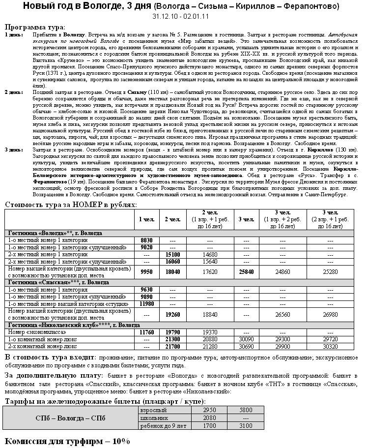 09 Дек 2010 14:30:41 РОССИЯ - 31.12-02.01 - Новый год в Вологде, 3 дня от фирмы ТУРИСТИЧЕСКАЯ ФИРМА МУЗЕЙ