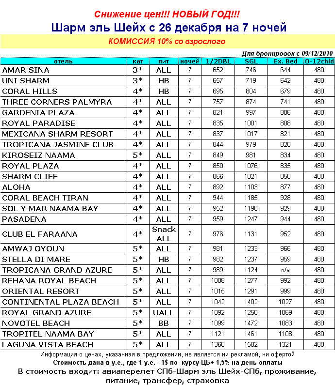 09 Дек 2010 14:48:10 ЕГИПЕТ - ШАРМ-ЭЛЬ-ШЕЙХ с 26.12 на 7 ночей от фирмы БАГИРА