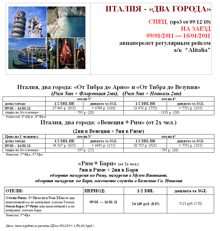 13 Дек 2010 11:00:29 ИТАЛИЯ-ЭКСКУРСИОННЫЕ ТУРЫ в ДВА ГОРОДА от фирмы АРТ-ТРЕВЕЛ