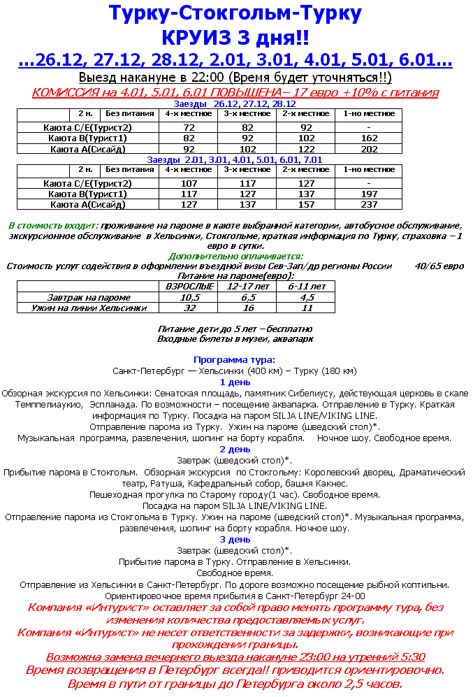 11 Дек 2010 13:00:14 КРУИЗЫ 3 ДНЯ НА НОВОГОДНИЕ КАНИКУЛЫ, из Турку от фирмы ИНТУРИСТ
