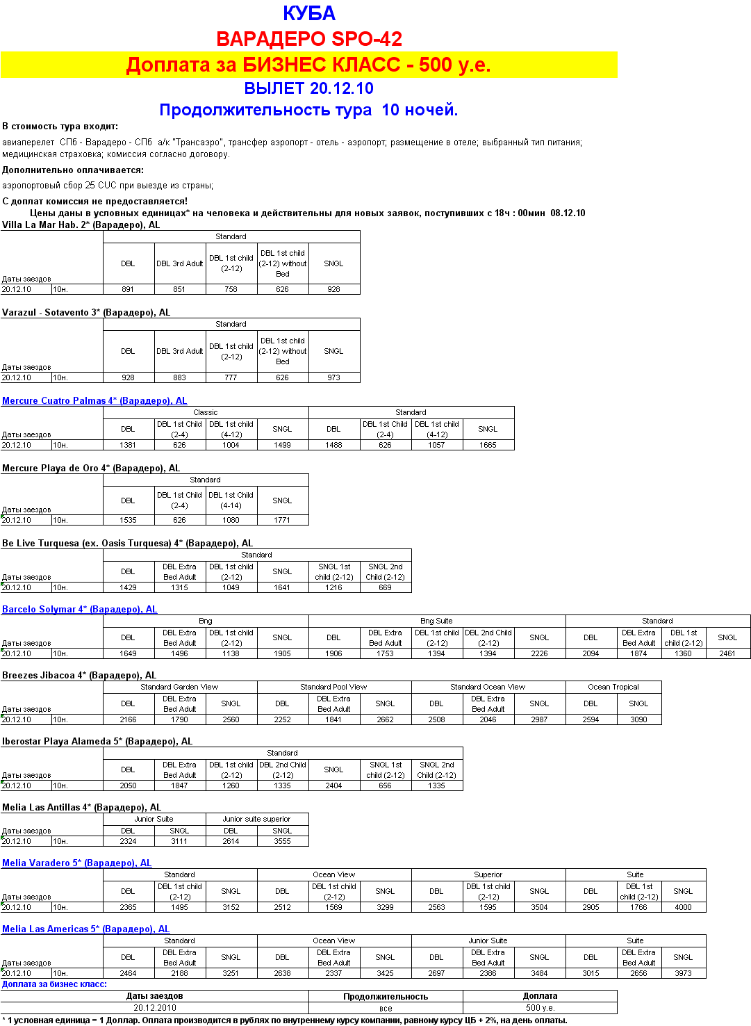 13 Дек 2010 13:26:21 КУБА, ВАРАДЕРО - вылет 20.12 - ПОСЛЕДНИЕ МЕСТА от 891 у.е. от фирмы ЮЖНЫЙ КРЕСТ