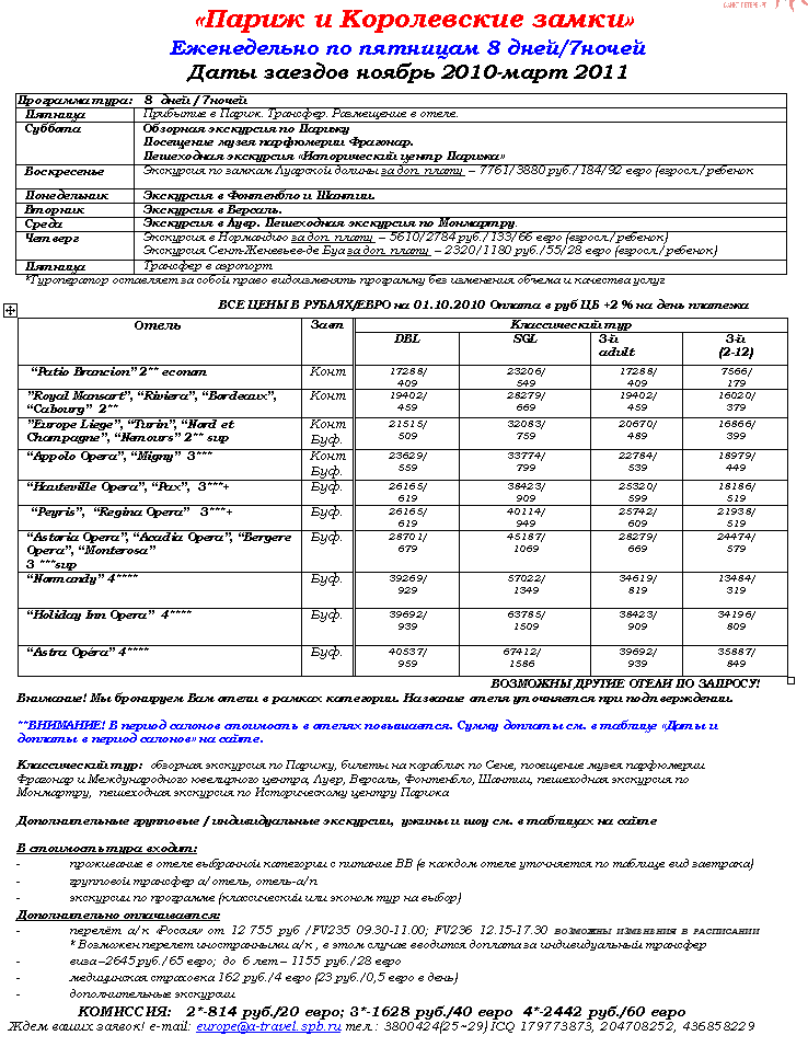 13 Дек 2010 15:23:00 ФРАНЦИЯ - Париж и Королевские Замки 8дн/7н от фирмы АКАДЕМИЯ