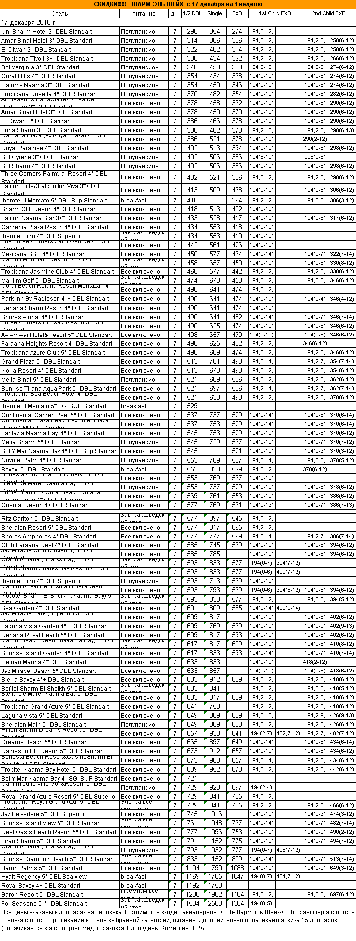 14 Дек 2010 16:01:00 ЕГИПЕТ. СПб-Шарм-Эль-Шейх с 17.12 по 24.12 на 1 неделю - от фирмы АЛМА ТУР