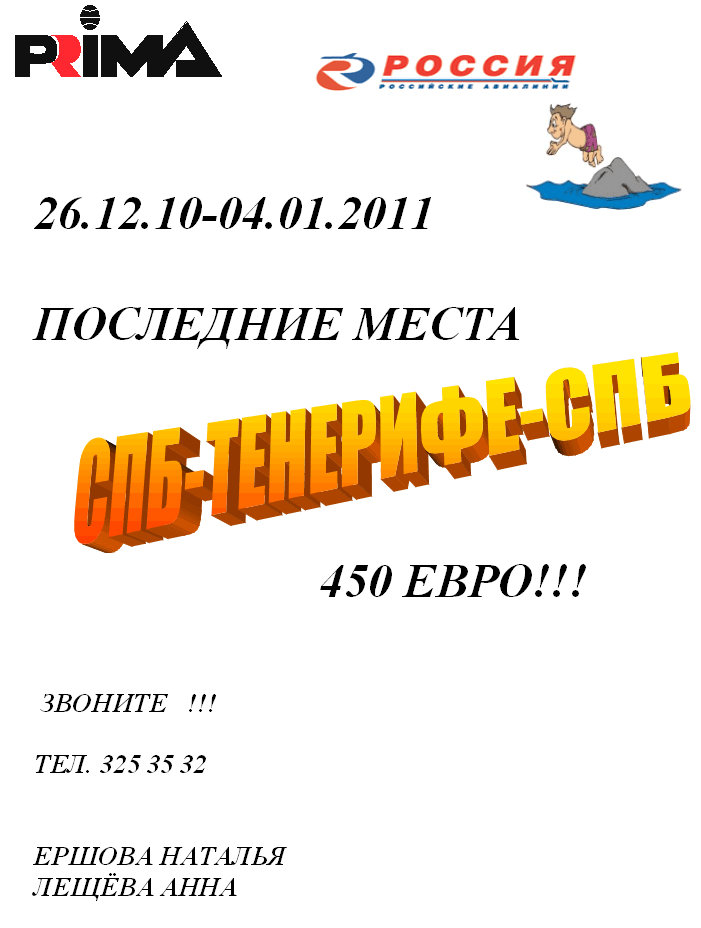 14 Дек 2010 15:10:05 ИСПАНИЯ - ТЕНЕРИФЕ 26.12-04.01 из СПб от фирмы ПРИМА