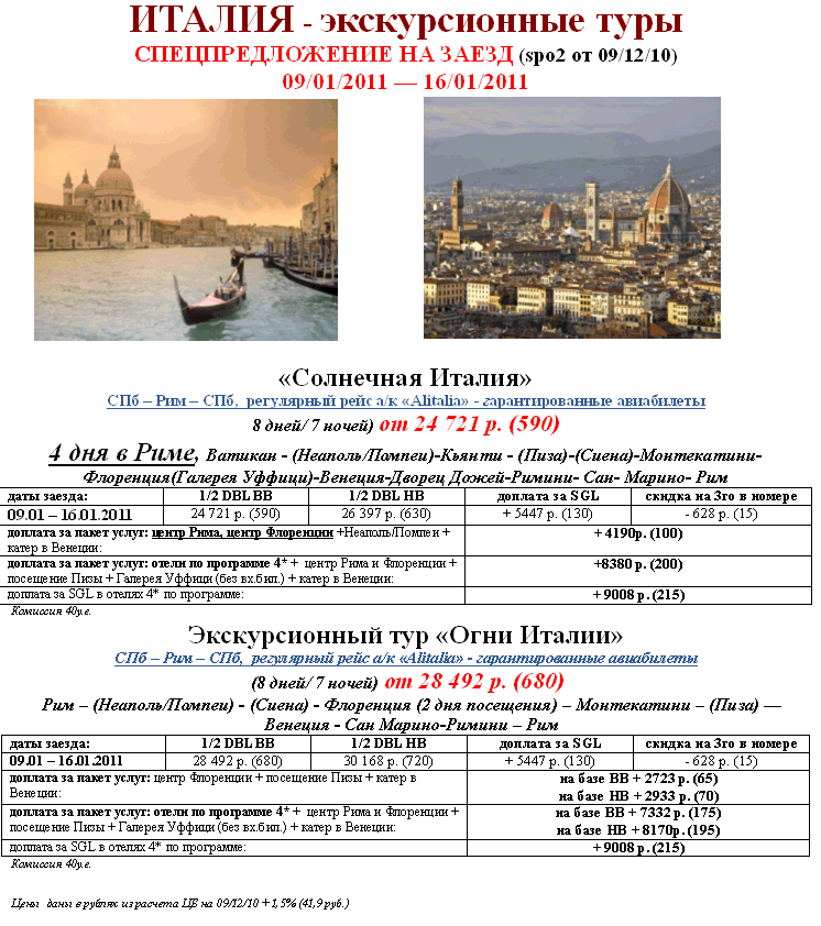 16 Дек 2010 10:09:56 ИТАЛИЯ 09.01-16.01 - Экскурсионные Туры от фирмы АРТ-ТРЕВЕЛ