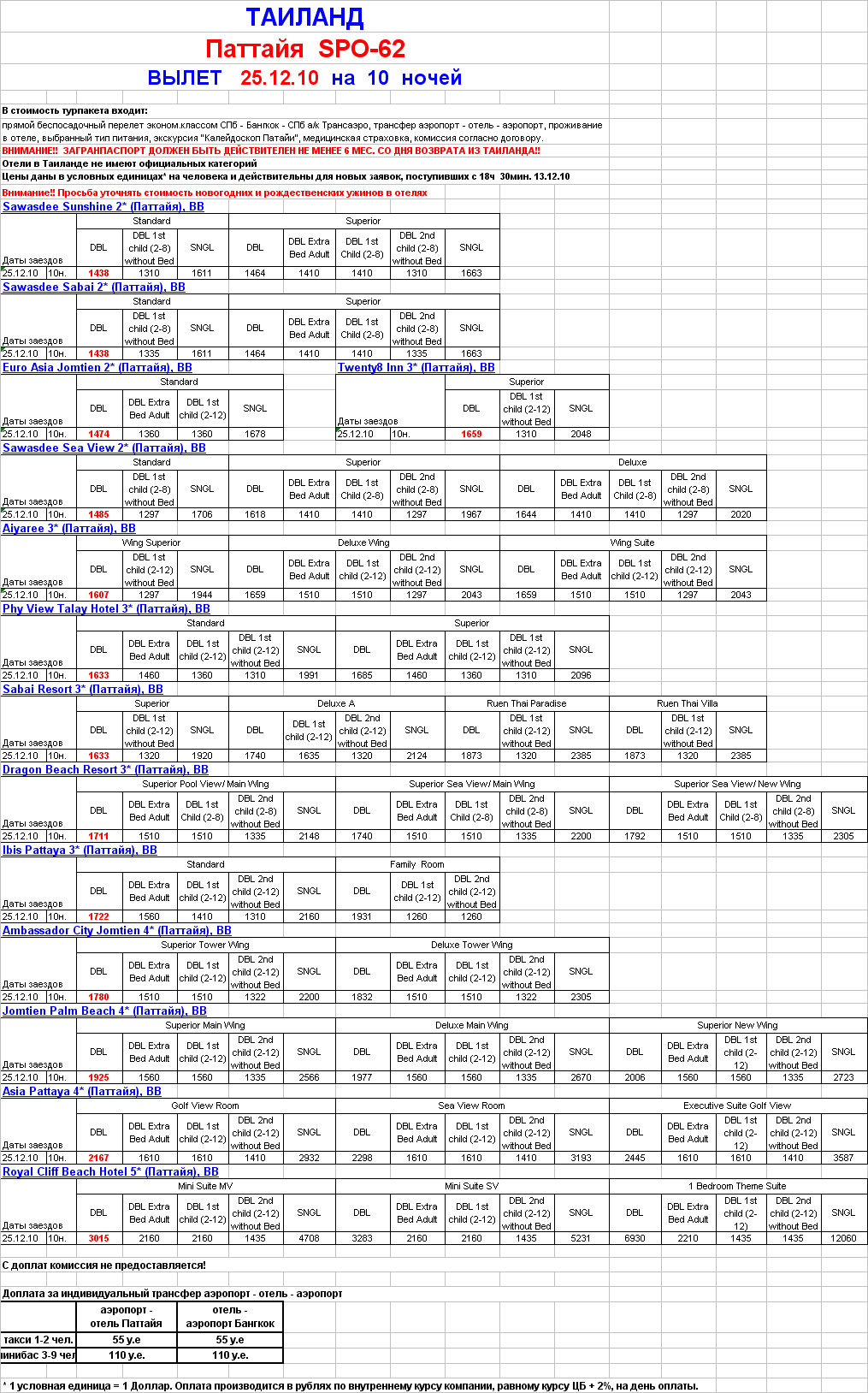 15 Дек 2010 14:27:43 ТАИЛАНД, ПАТТАЙЯ - вылет 25.12 ПОСЛЕДНИЕ МЕСТА на НОВЫЙ ГОД от фирмы ЮЖНЫЙ КРЕСТ