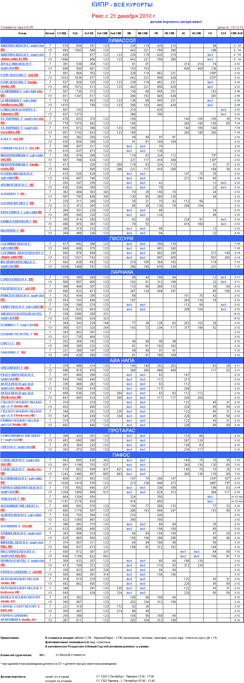 15 Дек 2010 16:50:12 КИПР с 21.12 от фирмы АВАТАРА