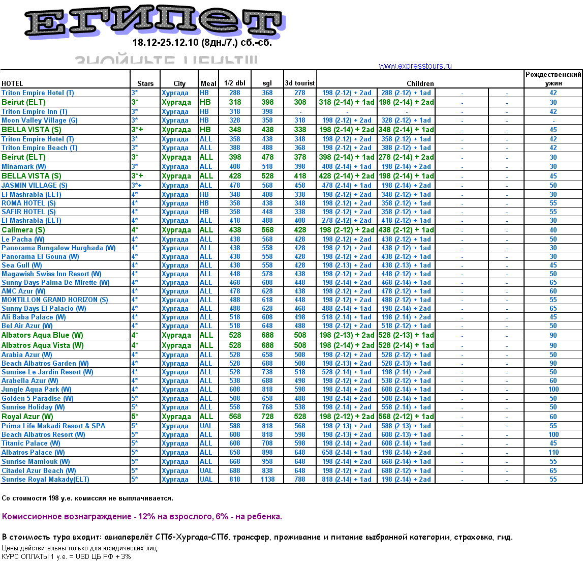 16 Дек 2010 15:15:42 ЕГИПЕТ - ХУРГАДА с 18.12 по 25.12 от фирмы ЭКСПРЕСС ТУРС