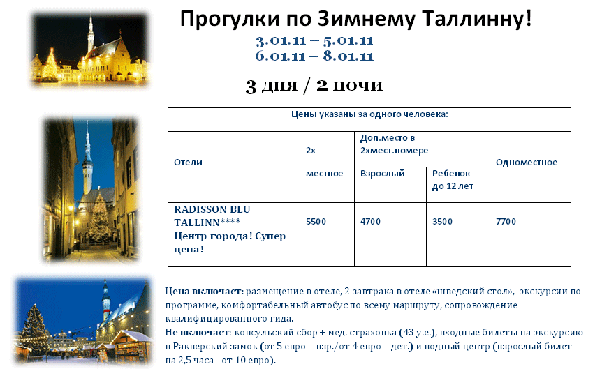 16 Дек 2010 17:38:08 ЭСТОНИЯ. Прогулки по Зимнему Таллинну! 3.01.11 - 5.01.11, 6.01.11 - 8.01.11 от фирмы АРКАДА
