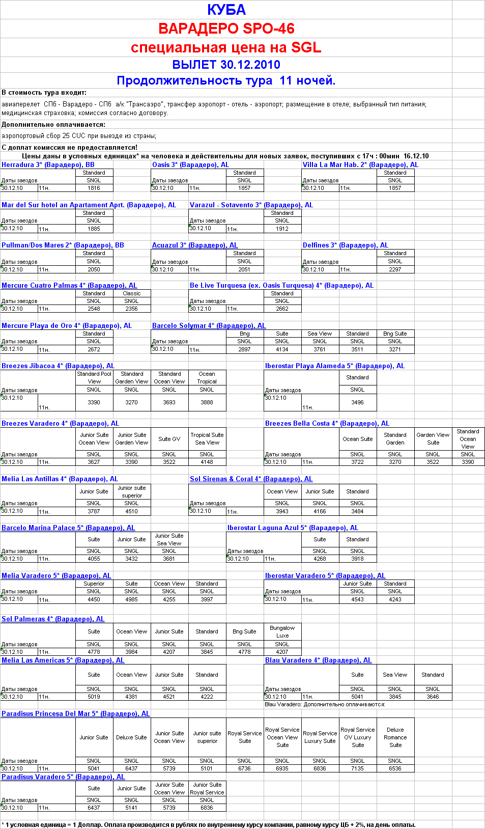 17 Дек 2010 12:07:26 КУБА. ВАРАДЕРО - ВЫЛЕТ 30.12 СПЕЦИАЛЬНАЯ ЦЕНА на SGL - от фирмы ЮЖНЫЙ КРЕСТ