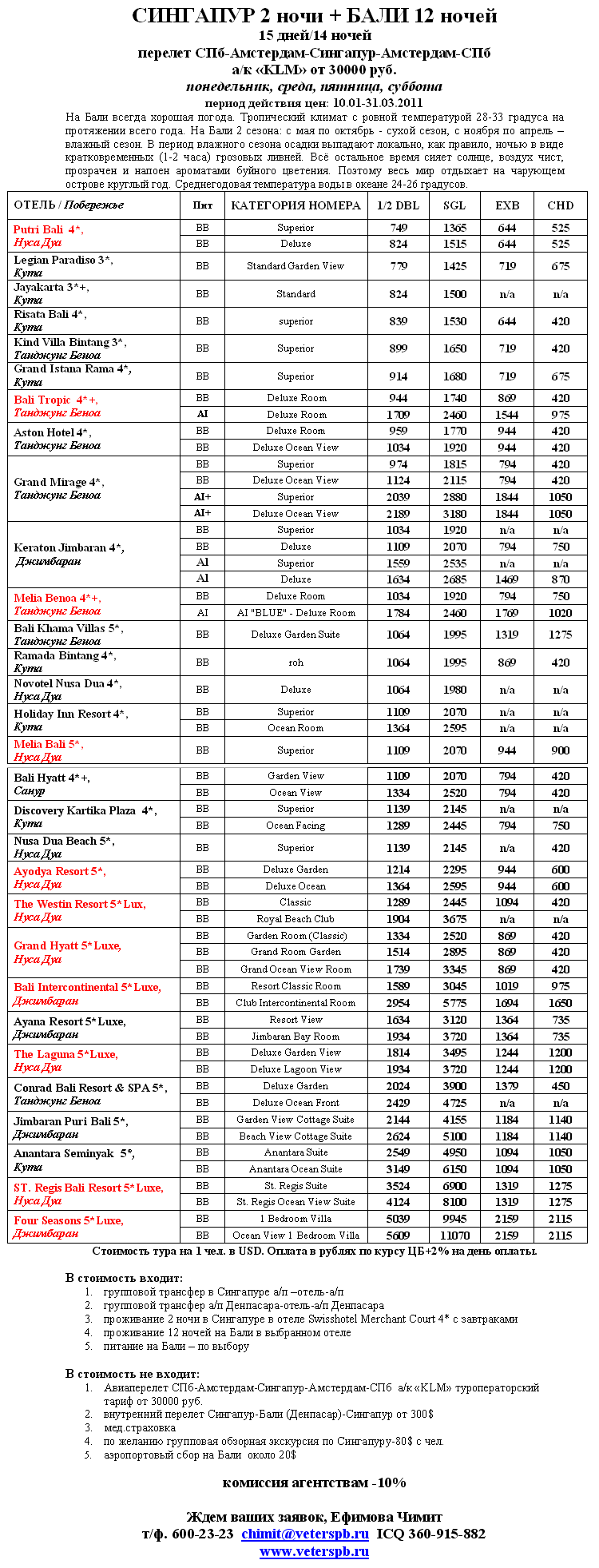10 Янв 2011 11:00:53 ИНДОНЕЗИЯ: Сингапур+Бали от фирмы ВЕТЕР СТРАНСТВИЙ