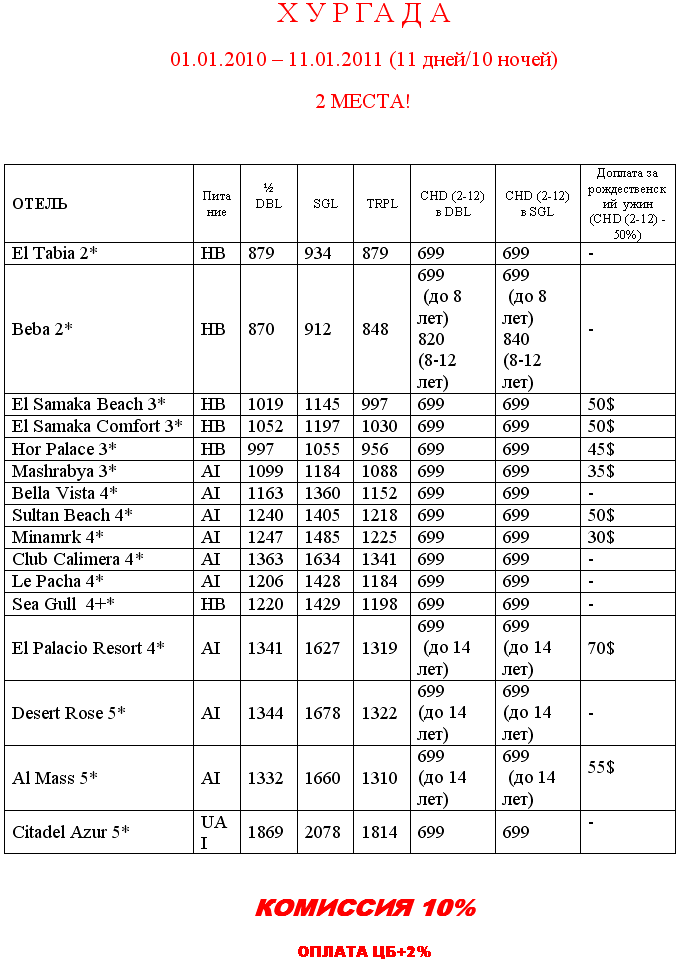 20 Дек 2010 20:00:19 ЕГИПЕТ - ХУРГАДА РОЖДЕСТВО 01/01 -11/01 от фирмы TRIVE ТУР