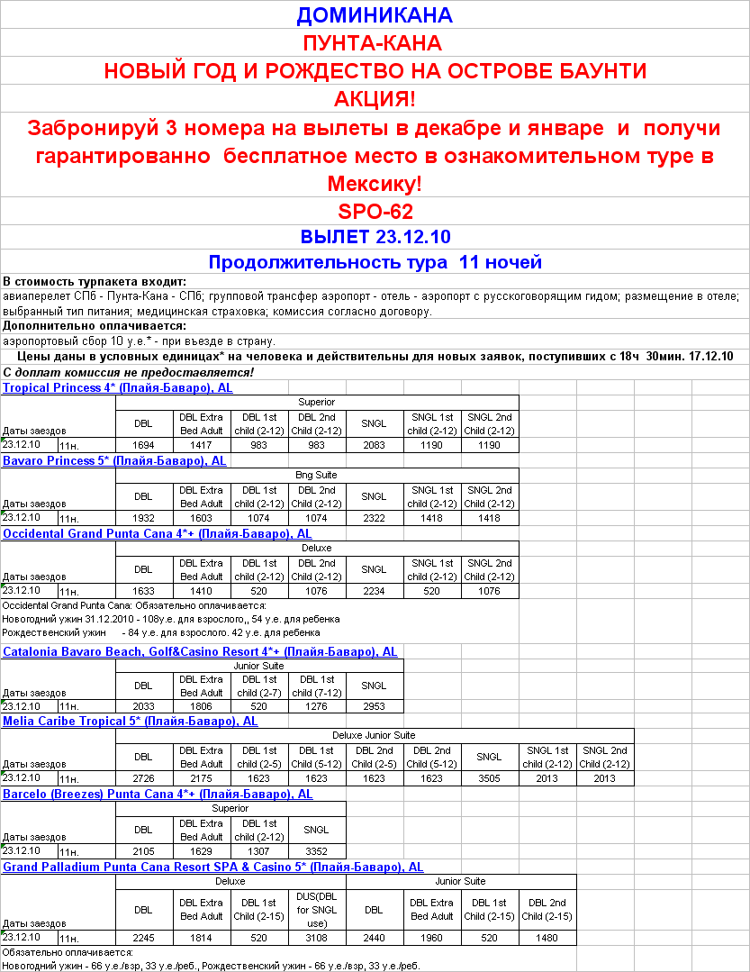 21 Дек 2010 12:37:20 ДОМИНИКАНА - ВЫЛЕТ 23.12 - АКЦИЯ! Отели 4-5* от 1633 у.е. от фирмы ЮЖНЫЙ КРЕСТ