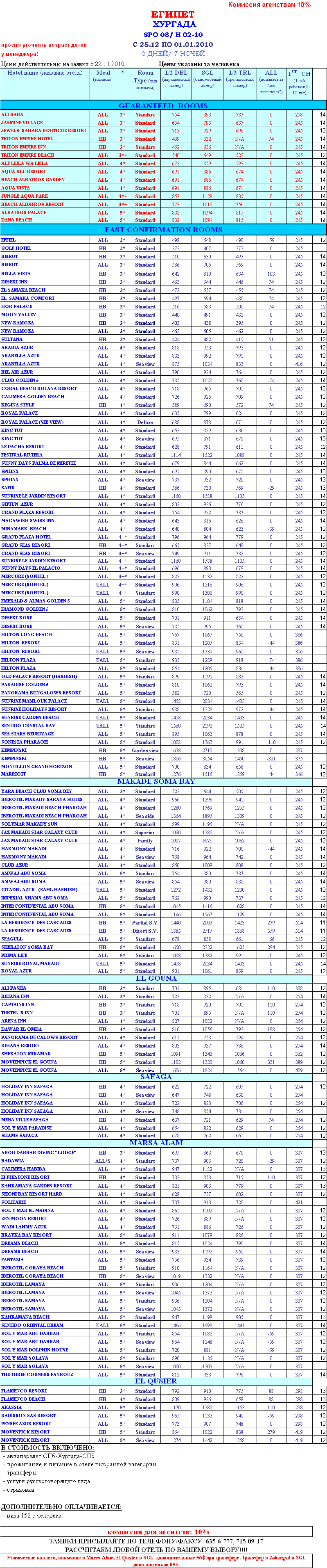 21 Дек 2010 13:31:58 ЕГИПЕТ - ХУРГАДА с 25.12 по 01.01 от фирмы EL DAKAMY TRAVEL