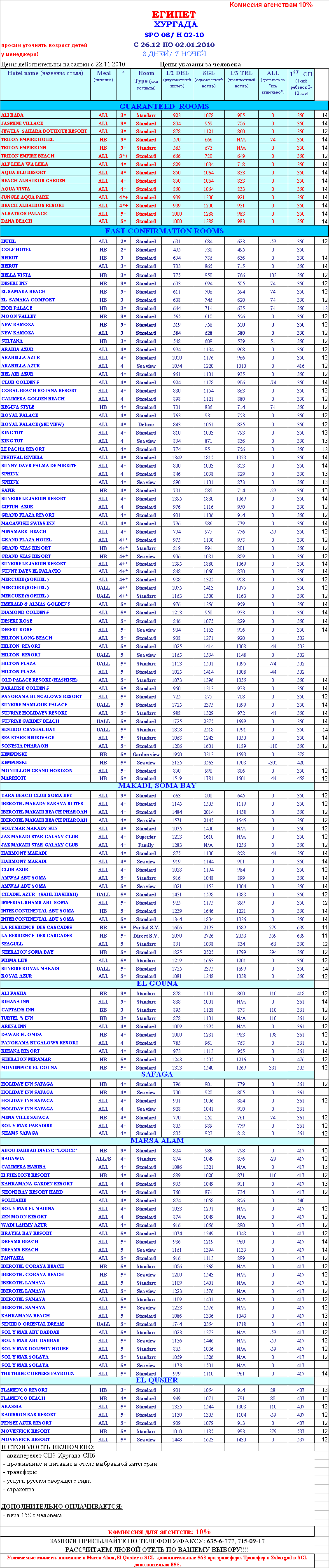 22 Дек 2010 13:36:32 ЕГИПЕТ-ХУРГАДА С 26.12 ПО 02.01.2010 от фирмы EL DAKAMY TRAVEL