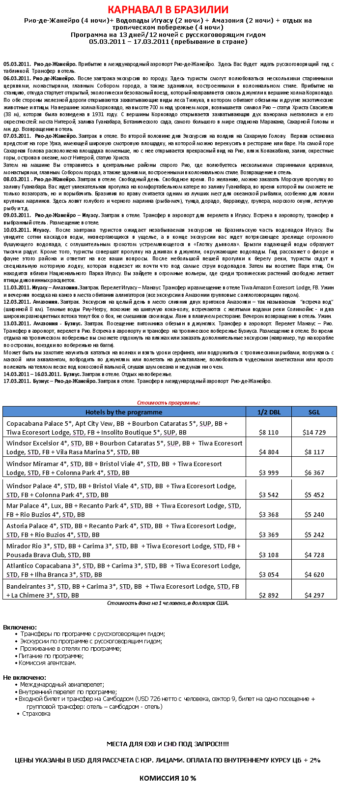 ÁÐÀÇÈËÈß ~ !!! ÊÀÐÍÀÂÀË - ÊÀÐÍÀÂÀË - ÊÀÐÍÀÂÀË !!! ~ (ÐÈÎ 4í + ÂÎÄÎÏÀÄ ÈÃÓÀÑÓ 2 í + ÀÌÀÇÎÍÈß 2í + ÎÒÄÛÕ ÍÀ ÏÎÁÅÐÅÆÒÅ 4í) ~ îò ôèðìû INTURION.RU