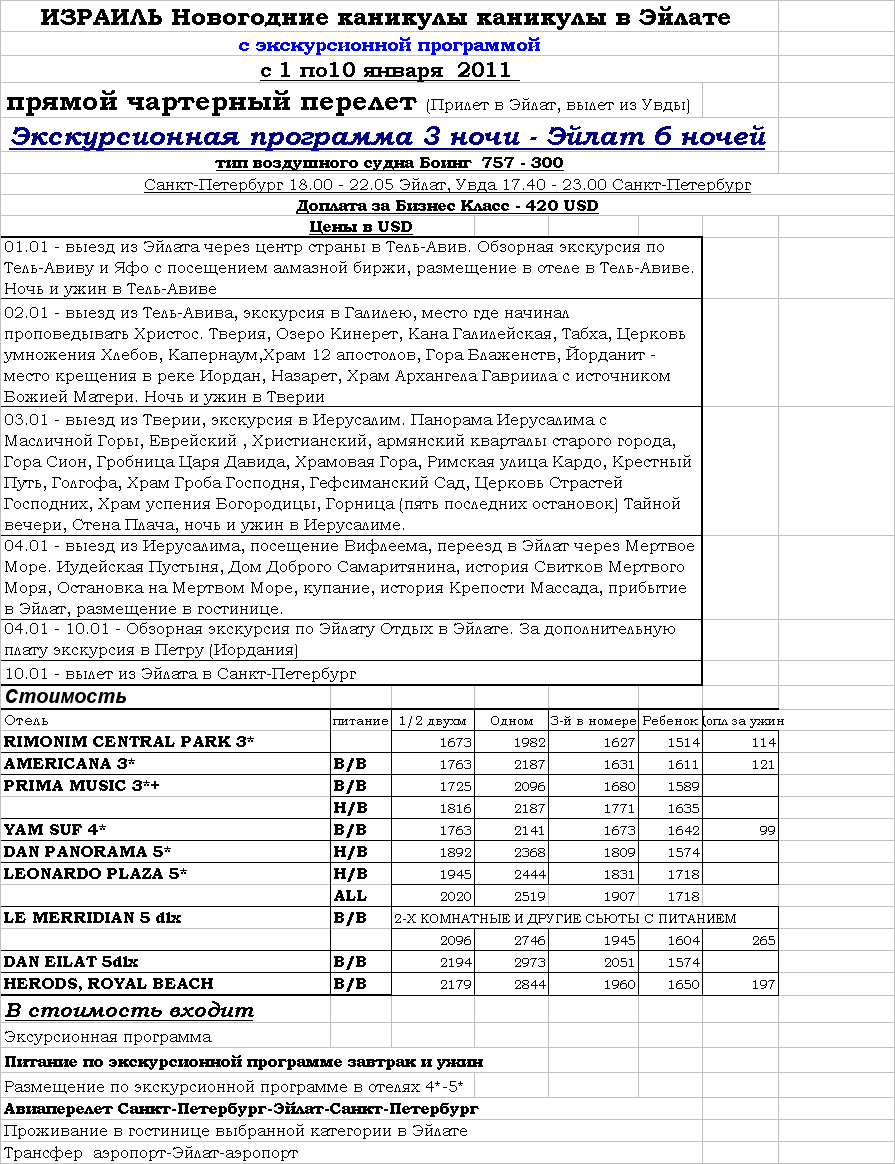 24 Дек 2010 17:39:06 ИЗРАИЛЬ - Новогодние каникулы в Эйлате с экскурсионной программой c 1 по 10 января 2011 от фирмы МИР ТРЭВЕЛ