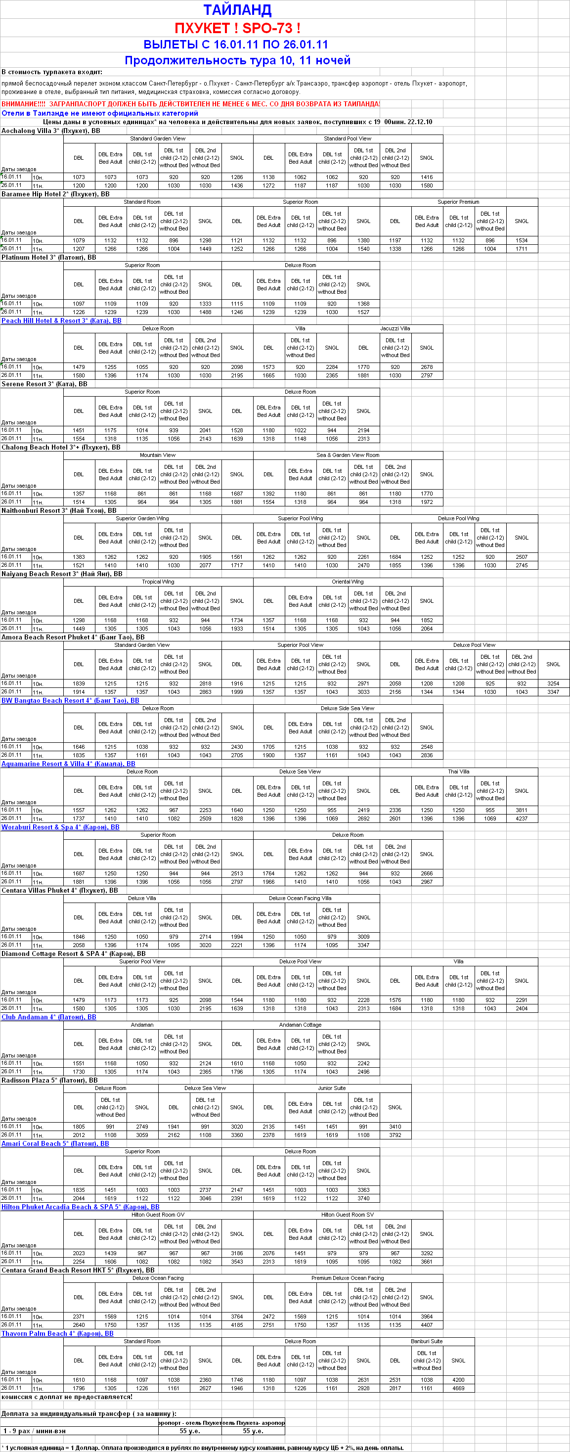 27 Дек 2010 13:55:07 ТАИЛАНД, о. ПХУКЕТ - ИЗ ЗИМЫ В ЛЕТО!СНИЖЕНИЕ ЦЕН НА ЗАЕЗДЫ В ЯНВАРЕ 3-5* от 1073 y.e. от фирмы ЮЖНЫЙ КРЕСТ