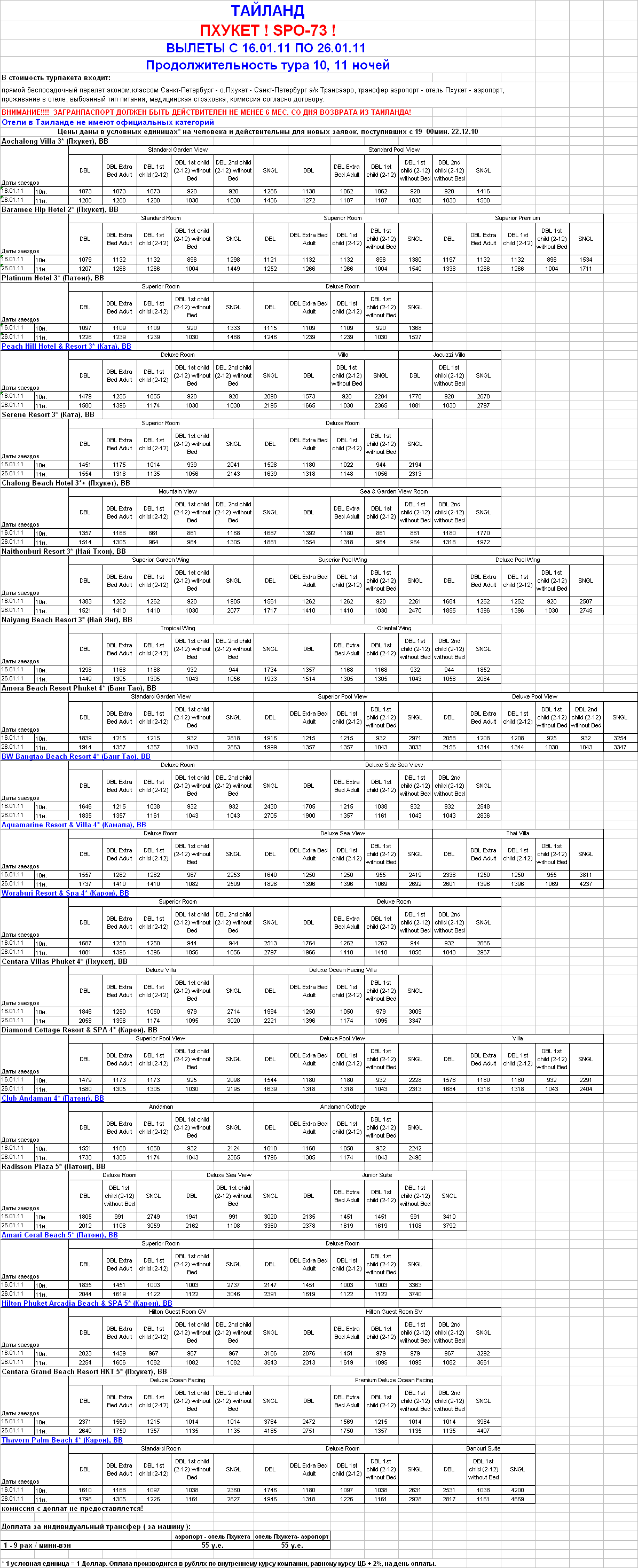 28 Дек 2010 11:59:03 ТАИЛАНД, о. ПХУКЕТ - ИЗ ЗИМЫ В ЛЕТО!СНИЖЕНИЕ ЦЕН НА ЗАЕЗДЫ В ЯНВАРЕ 3-5* от 1073 y.e. от фирмы ЮЖНЫЙ КРЕСТ