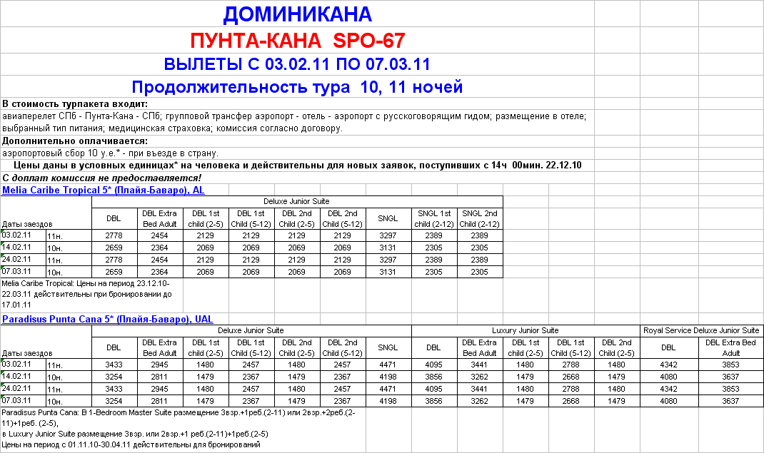 28 Дек 2010 11:59:22 ДОМИНИКАНА - ВЫЛЕТЫ c 03.02.11 ОТЕЛИ MELIA и PARADISUS PUNTA CANA от фирмы ЮЖНЫЙ КРЕСТ