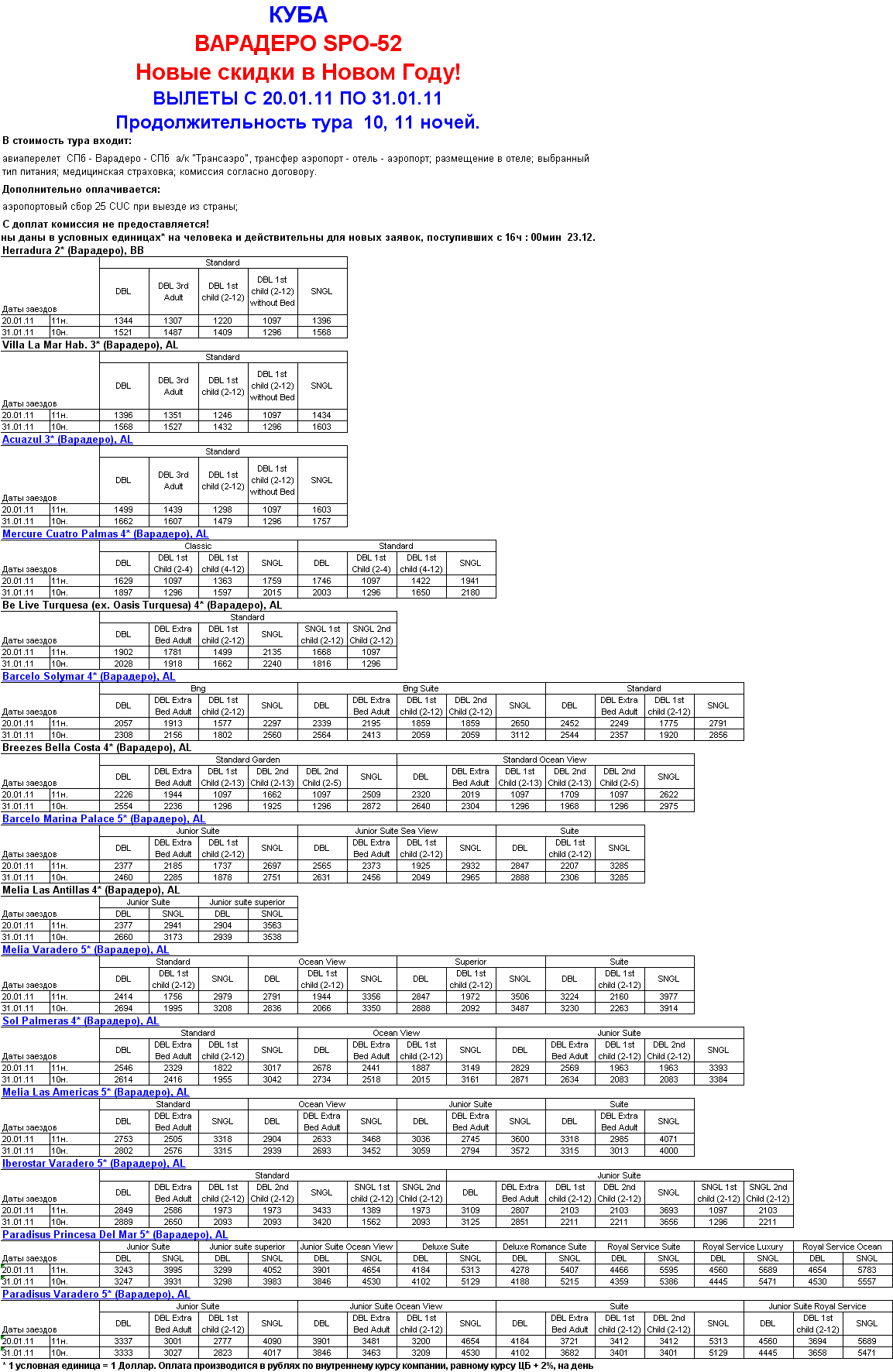 30 Дек 2010 13:29:47 КУБА, ВАРАДЕРО - ВЫЛЕТЫ 20.01, 31.01 от 1344 у.е. от фирмы ЮЖНЫЙ КРЕСТ