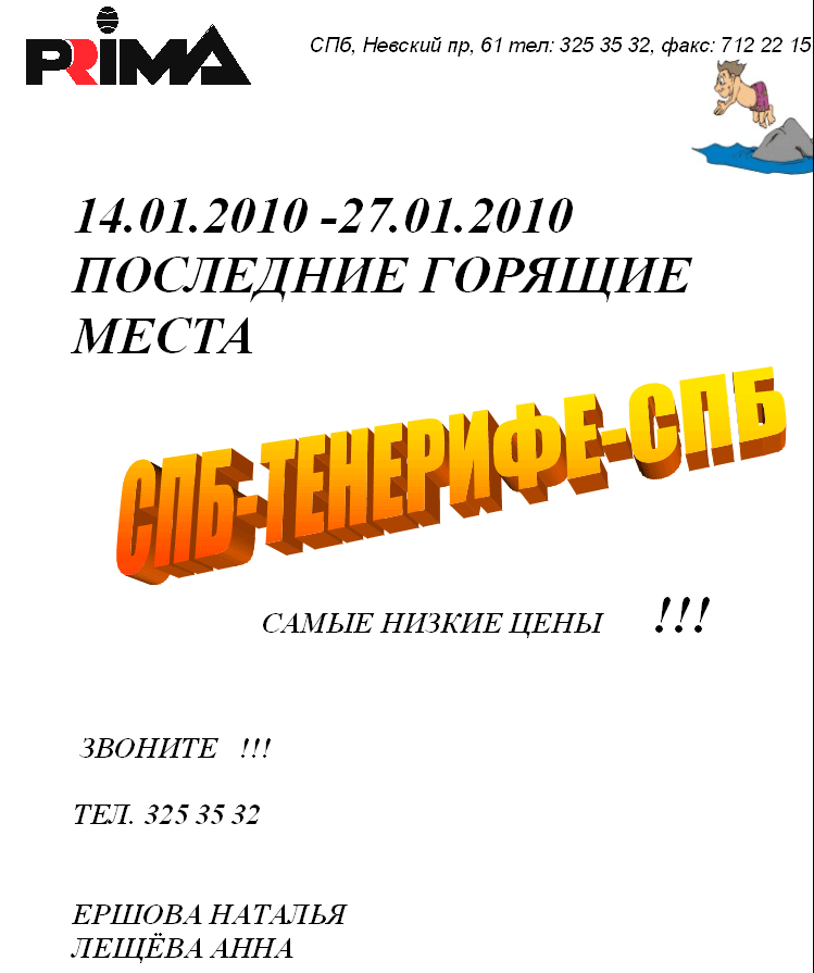 11 Янв 2011 10:03:27 ИСПАНИЯ - АВИА 14.01-27.01 СПб-Тенерифе-СПб от фирмы ПРИМА
