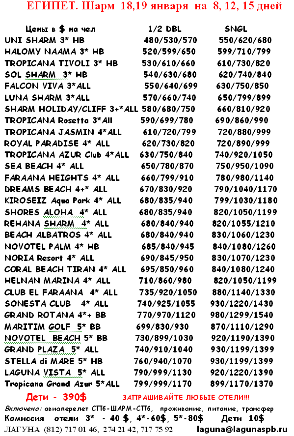 11 Янв 2011 11:13:32 ЕГИПЕТ, ШАРМ СКИДКИ 18,19 января на 8,12,15 дней от фирмы ЛАГУНА