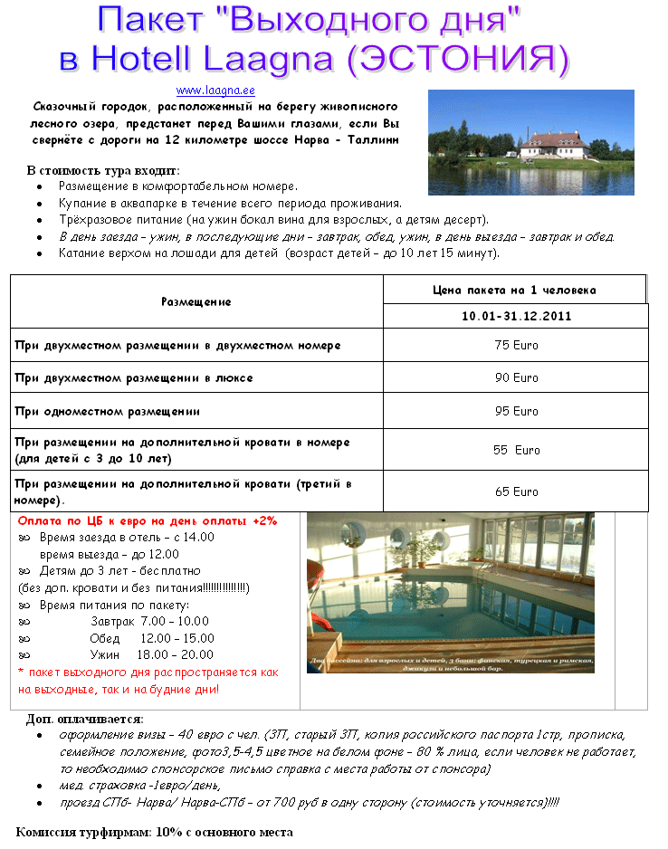 11 Янв 2011 13:21:10 ЭСТОНИЯ. Пакет "Выходного дня" в Hotell Laagna от фирмы АЛМА ТУР